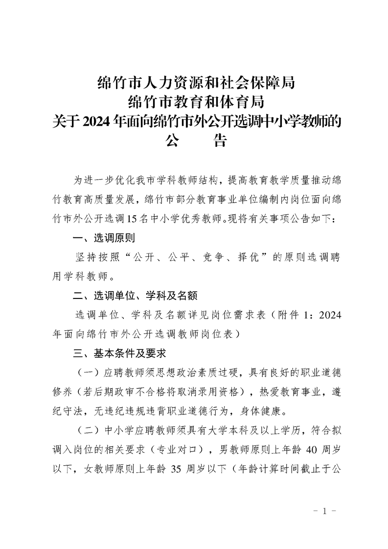 附件3;绵竹市2024年公开选调教师基本情况一览表.xlsx