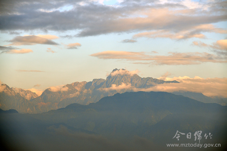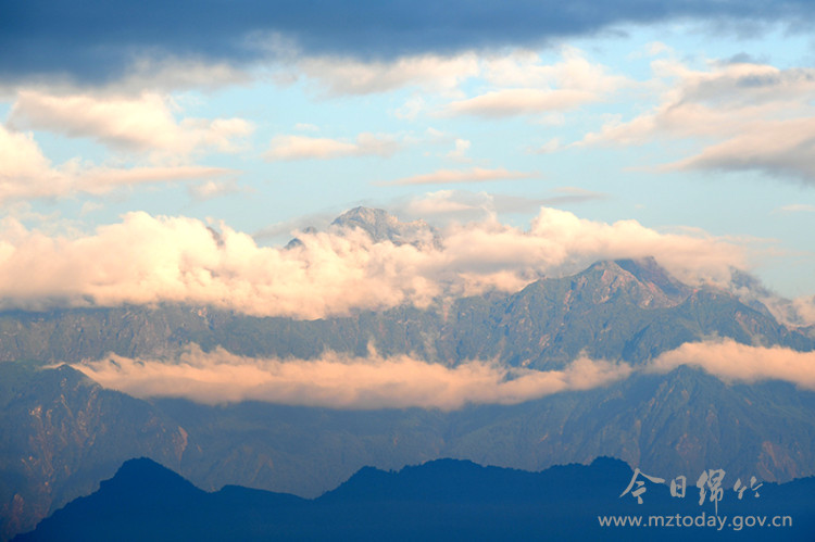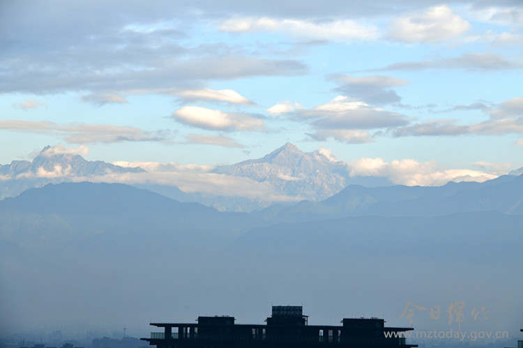 7月2日晚的一场大雨过后,绵竹的空气更加清新,远山如黛,层峦叠嶂,层次分明,龙门山脉在云雾的渲染下如同一幅水墨画。