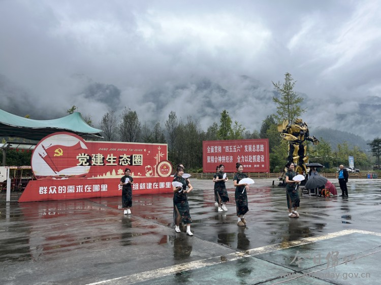10月4日上午11点,秋雨渐歇,连绵青山在云雾掩映下若隐若现,阳光透过初黄的银杏叶洒下斑驳光影,与绵远河的潺潺流水构成绝美画卷。童话广场上,“月满清平·家国同庆”2025清平镇国庆中秋“双节”文艺表演准时开演,演员们或跳起节奏明快的舞蹈,或深情演唱一首首流行歌曲,或身着特色民族服饰,用一场服装秀诉说着羌汉文化交融的故事。游客们纷纷驻足围观,掌声与舞步节拍慢慢合上,连空气都跟着轻快起来。