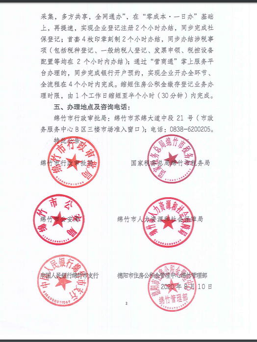 关于进一步压缩企业开办时间实行“零成本·小时办”的公告